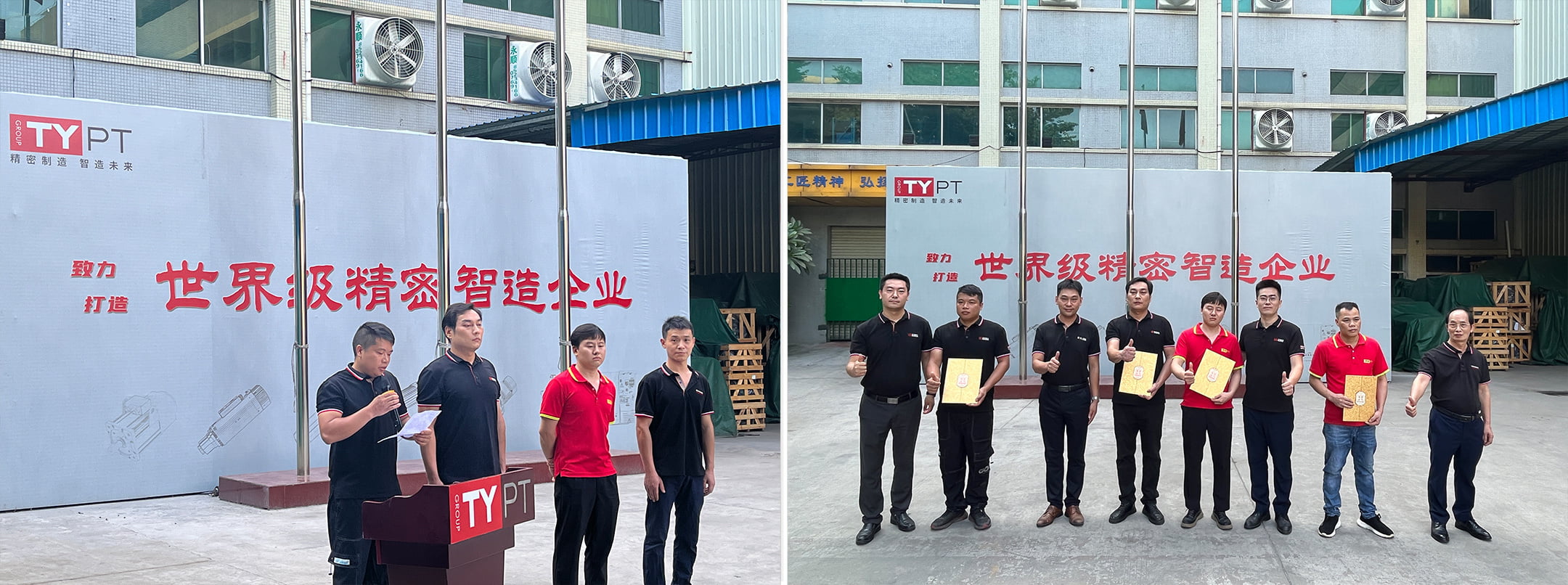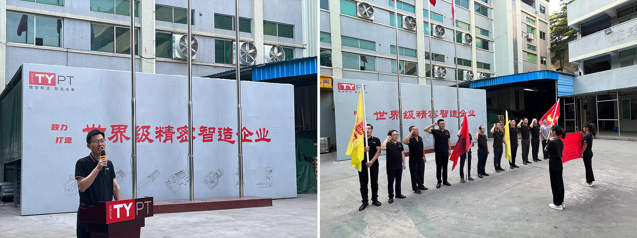 2022年8月1日早上七点四十分,国旗台前,天一国旗护卫队前排整齐列队,全体员工方队依次排开,在这个特殊的日子展示我们的风采。伴随着义勇军进行曲,国旗护卫队队员昂首挺胸,迈着刚劲整齐的步伐,护卫着神圣的国旗走向旗杆,“起来!不愿做奴隶的人们……”,雄壮的国歌声响起,鲜红的五星红旗冉冉升起,随风飘扬。嘹亮的国歌声中,鲜艳的国旗下,庄严的氛围中,爱国爱党、奋发图强的情感在每位员工心中油然而生。一种强烈的民族自豪感、荣誉感和爱国爱企情怀激荡在每位员工的心中。